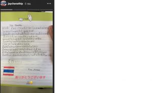 หลังจบเกมที่ คอนซาโดเล่ ซัปโปโร เฉือนชนะ จูบิโล่ อิวาตะ 2-1 ในศึก เจลีก เมื่อสุดสัปดาห์ที่่ผ่านมา มีเเฟนบอลที่คาดว่าจะเป็นเด็กหญิงชาวญี่ปุ่น พยายามเขียนจดหมายด้วยภาษาไทยส่งให้ “เมสซี่เจ” ชนาธิป สรงกระสินธ์