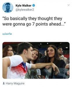 หลังจากนั้น​ ไคล์ วอล์คเกอร์ ได้โพสต์ภาพของ แฮรี่ แม็คไกวร์ กองหลังเลสเตอร์(ที่ยิงประตูตีเสมอ)​ กำลังยืนคุยกับแฟนบอลสาวสวยว่า