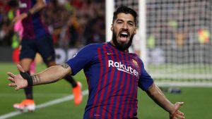 กองหลังมาให้ ซัวเรซ ที่วิ่งสอดขึ้นมาเข้าชาจจ่อๆ เจ้าบ้านนำไปก่อน 1-0