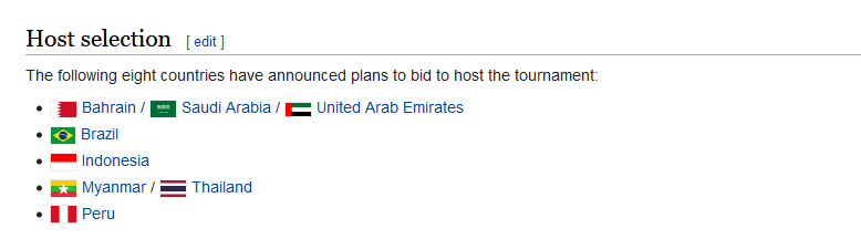ทั้งนี้ทาง “ฟีฟ่า” จะมีการประกาศออกมาอย่างเป็นทางการว่าชาติใดจะได้สิทธิ์เป็นเจ้าภาพในฟุตบอลรายการนี้ในวันที่ 23 ตุลาคม ปี 2019 ที่เมืองเซี่ยงไฮ้ ประเทศจีน ซึ่งนอกจาก ไทย, เมียนมาร์ และ อินโดนิเซีย ที่เป็นตัวแทนจากทวีปเอเชียแล้ว ยังมีชาติจากทวีปเดียวกันอย่าง บาห์เรน, ซาอุดิอาระเบีย และ สหรัฐอาหรับเอมิเรตส์ ที่เสนอตัวเป็นเจ้าร่วม 3 ชาติ ในรายการนี้ด้วย