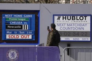 สิงห์บลูส์ ถูกเเบนห้ามขายตั๋วให้เเฟนบอลทั่วไป(ยกเว้นที่ถือตั๋วปี) เหตุผลที่เกี่ยวโยงมาจากการถูกคว่ำบาตรของเจ้าของสโมสร โรมัน อับราโมวิช ทำให้เกมต่างพวกเขาจะมีเเฟนบอลไม่กี่คน(ประมาณ 700 คน) เข้าชมเกม