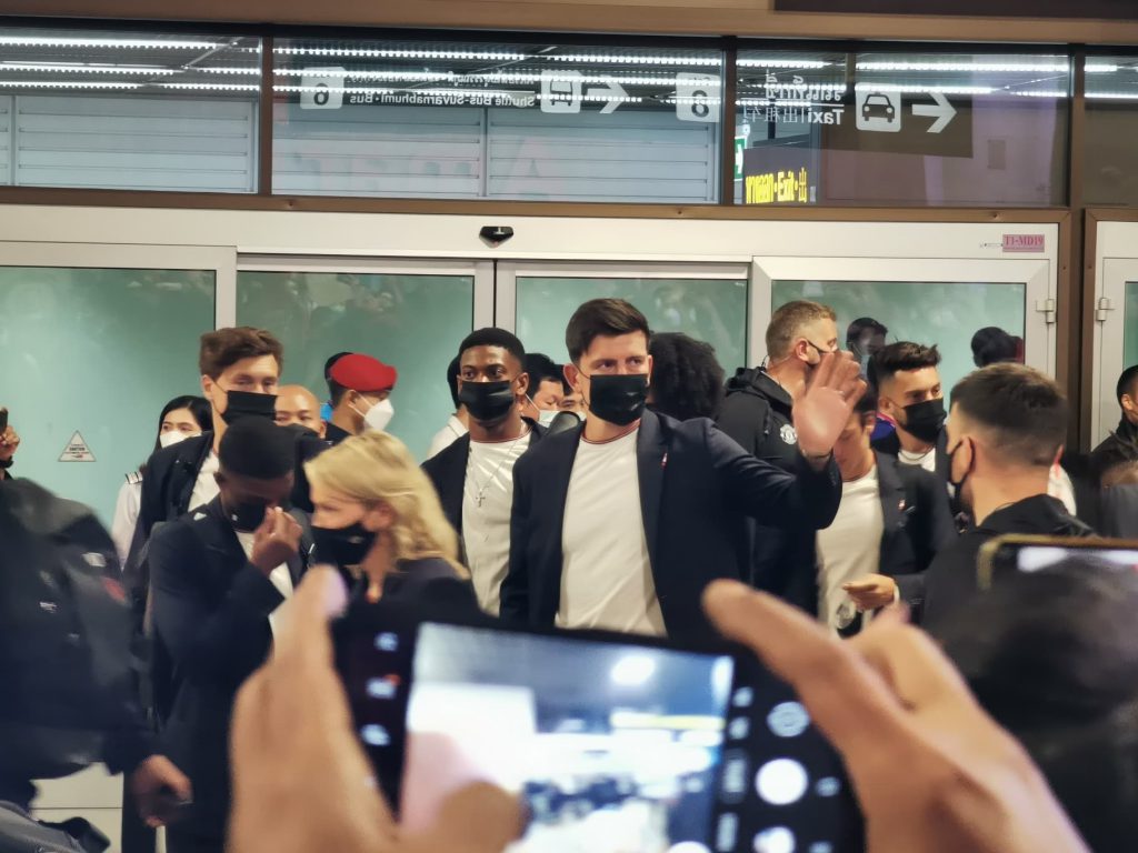 ล่าสุด ขุนพลแข้ง “ปีศาจแดง” แมนเชสเตอร์ ยูไนเต็ด เดินทางด้วยเที่ยวบินพิเศษ ของสโมสร ถึงที่ท่าอากาศยานนานาชาติดอนเมือง ประเทศไทย เป็นที่เรียบร้อยแล้ว เมื่อเช้าวันเสาร์ที่ 9 ก.ค. ที่ผ่านมา โดยเดิมที ยูไนเต็ด จะเดินทางถึงในเวลา 09.40 น. อย่างไรก็ตามได้มีการมาช้ากว่ากำหนด ก่อนจะเดินออกมาในเวลา 11.22 น. ท่ามกลางแฟนบอล ปีศาจแดง ที่มารอกันอย่างคับคั่งตั้งแต่ช่วงเช้าตรู่