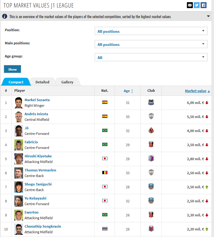 นั่นทำให้ล่าสุดจากการประเมินของ transfermarkt.com เว็บไซต์ชื่อดัง ได้เพิ่มค่าตัวคาดการณ์ของ ชนาธิป สรงกระสินธ์ เป็น 2.2 ล้านยูโร ซึ่งทำให้ “เจ้าเจ” ขยับขึ้นมาในอันดับที่ 10 ของบรรดานักเตะที่มีค่าตัวสูงที่สุดในศึก เจ ลีก ทันที