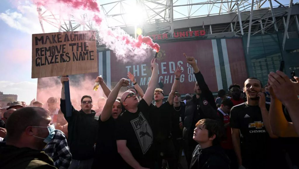 แฟนบอลแมนเชสเตอร์ ยูไนเต็ด มากมายรวมตัวกันประท้วงขับไล่ ตระกูลเกลเซอร์ เจ้าของสโมสรชาวอเมริกัน ออกไปจากทีม นอกสนาม โอลด์ แทร็ฟฟอร์ด เมื่อวันเสาร์ที่ผ่านมา