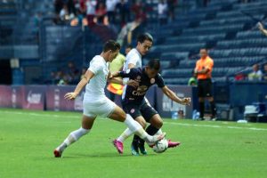 นาทีที่ 14 ฝั่งทีมเยือนได้บุกขึ้นมาลุ้นประตูบ้าง พุทธินันท์ แทงทะลุมาให้กับ โบนีญ่า เลี้ยงลุยเข้ามาหาจังหวะซัดจ่อๆแต่ ศิวรักษ์ ยัง