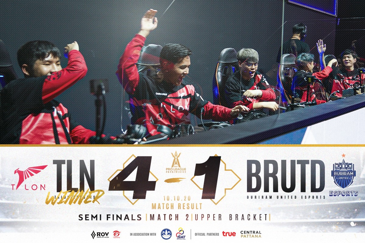 ทาลอน ทำฟอร์มสมราคาอันดับ 1 รอบเก็บคะแนน หลังเอาชนะทีมเต็งแชมป์ บุรีรัมย์ 4-1 เกม เข้าไปรอชิงชนะเลิศ ROV WINTER เป็นทีมแรก