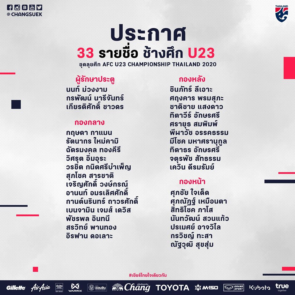 ทัพ “ช้างศึก” U23 ประกาศรายชื่อ 33 นักเตะ เตรียมลุยศึก ชิงแชมป์เอเชีย