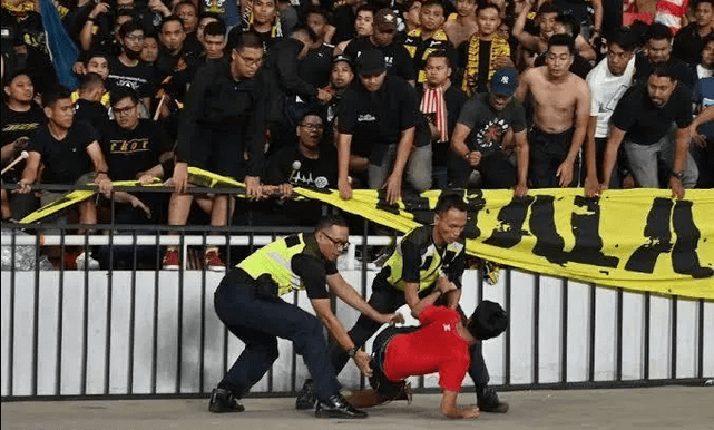 จากนั้นระหว่างเกมได้มีแฟนบอล “อิเหนา” บสงกลุ่มพยายามที่ปีนลงจากอัฒจันทร์ที่นั้งคนดู และวิ่งเข้ามาปะทะกับกลุ่มแฟนบอลมาเลย์ ที่บริเวณอยู่ใกล้ๆ พร้อมกับยังมีแฟนบอลเจ้าบ้านบางรายได้ปาสิ่งของลงมาใส่กลุ่มแฟนบอลทีมเยือนอีกด้วย จนทำให้เกมต้องหยุดชะงักไปนานหลายนาทีเลยทีเดียว ท้ายที่สุดเกมดังกล่าวจบลงด้วยชัยชนะของ ทีมชาติมาเลเซีย ที่บุกมาคว้า 3 คะแนนได้สำเร็จด้วยสกอร์ 2 – 3 ก่อนที่บรรดานักเตะและสต๊าฟโค้ชของทีม “เสือเหลือง” จำเป็นต้องเดินทางออกจากสนามด้วยรถหุ้มเกาะเพื่อป้องกันความปลอดภัยของตัวเอง
