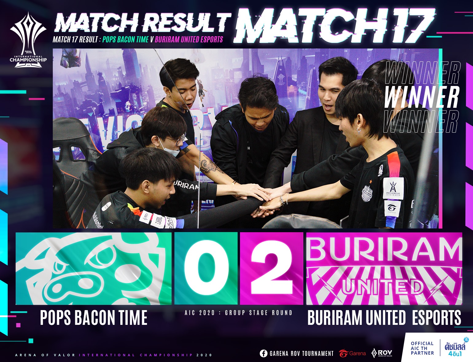 การแข่งขันอีสปอร์ตเกม Arena of Valor หรือ ROV ในศึกชิงแชมป์นานาชาติ Arena of Valor International Championship 2020 (AIC 2020) ที่มี 12 ทีมจาก 6 ชาติ 3 ทีมจากลีกใหญ่ ไทย, เวียดนาม, ไต้หวัน ส่วน จีน, เกาหลีใต้ และ อินโดนีเซีย อย่างละ 1 ทีม