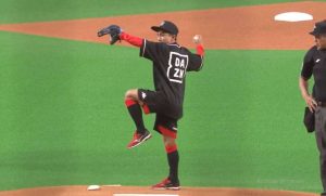 ซึ่งตามธรรมเนียมการแข่งขันเบสบอลลีกอาชีพ จะมีการเชิญบุคคลทรงคุณค่าในด้านต่างๆ หรือคนมีชื่อเสียง มาลงสนามในตำแหน่