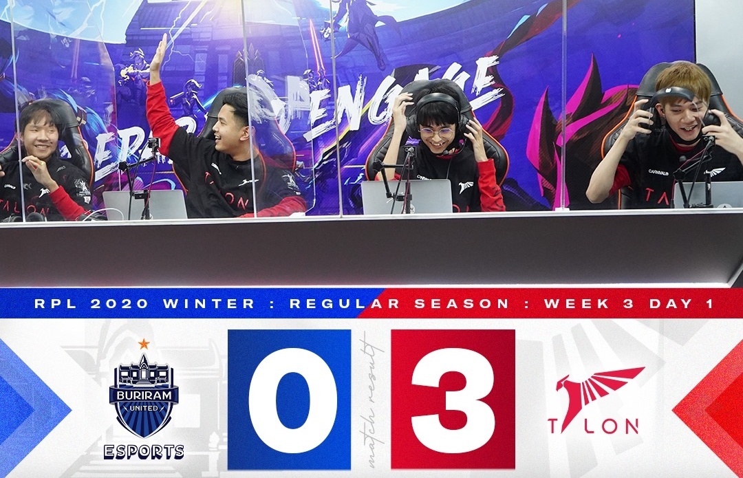 อีกคู่ บุรีรัมย์ ยูไนเต็ด ทีมจ่าฝูงที่ชนะมา 5 เกมติดต่อกันมี 15 คะแนนเต็ม พบกับเต็งสอง ทาลอน อีสปอร์ต ที่มี 12 คะแนน โดยเกมเดียวที่พวกเขาแพ้ก็คือเสียท่าให้กับ ปราสาทสายฟ้า 0-3 เกม ส่วนเกมนี้ต้องบอกว่า ทาลอน ทำการบ้านมาดีมากๆ เอาชนะไปได้ 3-0 เกมยัดเยียดความปราชัยนัดแรกในฤดูกาลนี้กับ บุรีรัมย์ เป็นที่เรียบร้อย