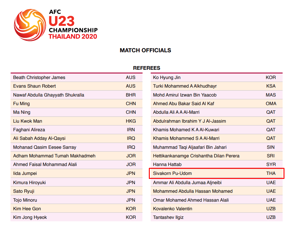 ศิวกร ภูอุดม ผู้ตัดสินใจไทย เพียงคนเดียว มีชื่อลงทำหน้าที่ในศึก ชิงแชมป์เอเชีย U23 2020