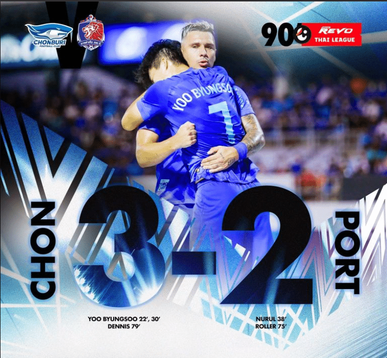ท้ายสุดจบเกม 90 นาที ชลบุรี เอฟซี เปิดบ้านเอาชนะ การท่าเรือ เอฟซี เก็บเพิ่มเป็น 35 แต้ม ขึ้นมาอยู่อันดับ 2 ส่วนทีมเยือนมีอยู่ 29 แต้ม เท่าเดิม อยู่อันดับ 7