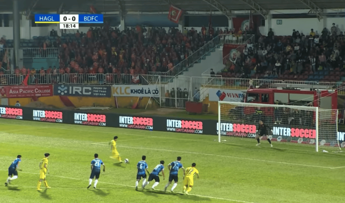 เหงียน คอง เฟือง โชว์ลูกยิงจุดโทษแบบปาเนนก้าไม่เข้า ส่งผลให้ ฮอง อันห์ ยาลาย ของกุนซือ ซิโก้เกียรติศักดิ์ เสนาเมือง ไม่ชนะใคร 10 นัดติดต่อกัน