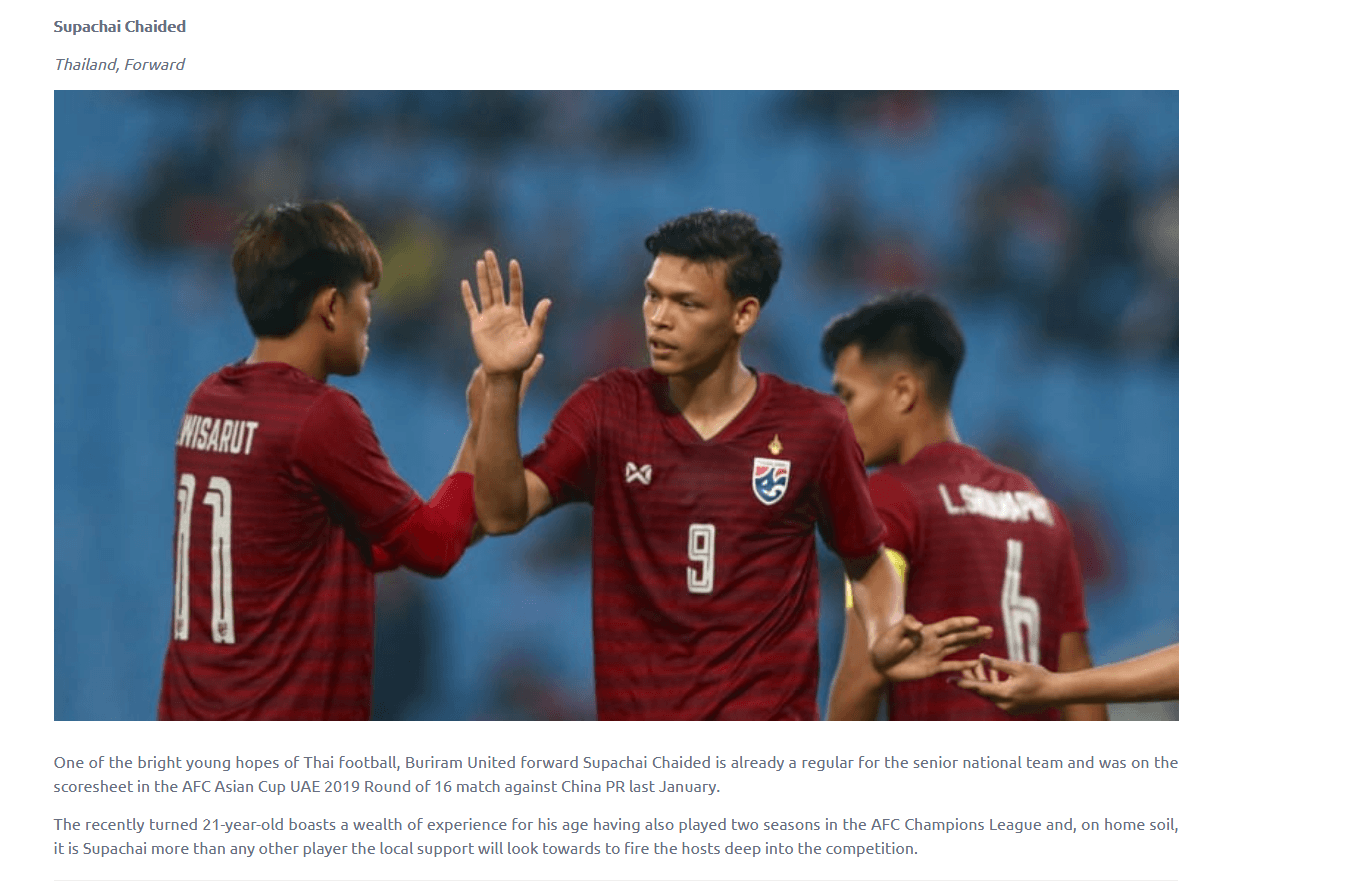 เอฟเอซี เลือก ศุภชัย ใจเด็ด คือ 1 ใน 4 นักเตะที่น่าจับตามองที่สุดในศึกชิงแชมป์เอเชีย U23 กลุ่ม เอ